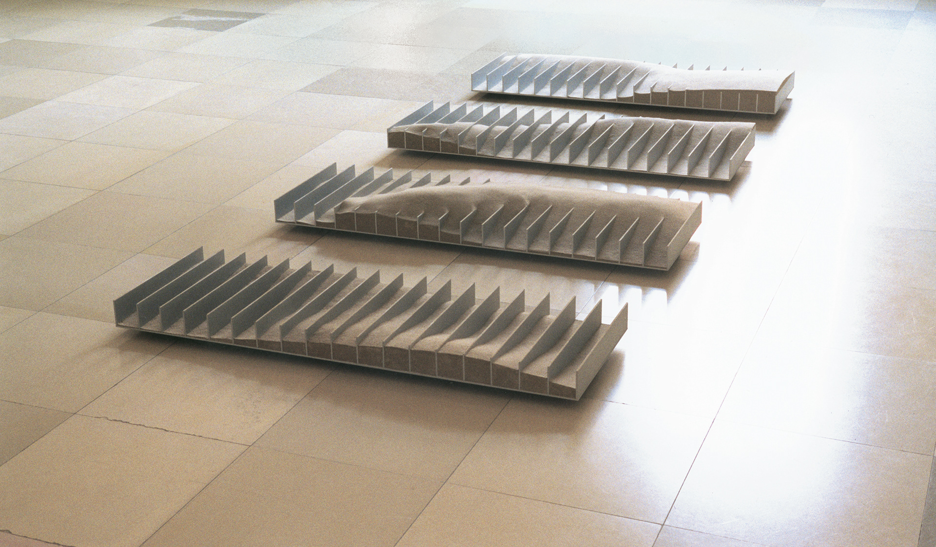 Aluminium eloxiert, Sand acrylgebunden, vierteilig 315 L x 135 B x 13 H cm München 1999
